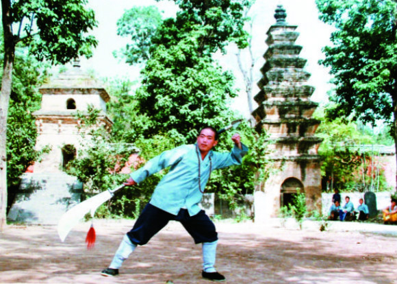 1992年10月,释永信在嵩山脚下的山坡上习武。