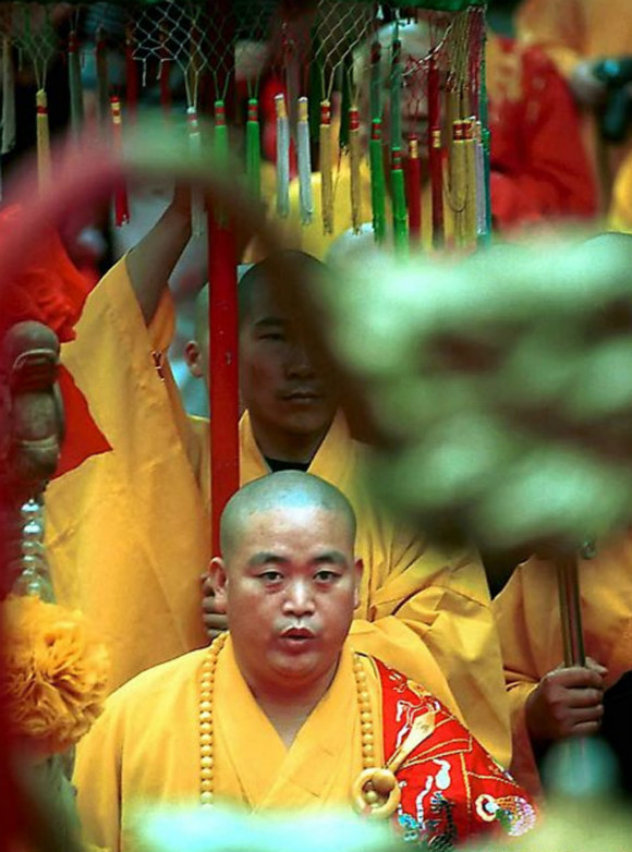 1999年释永信升丈仪式。