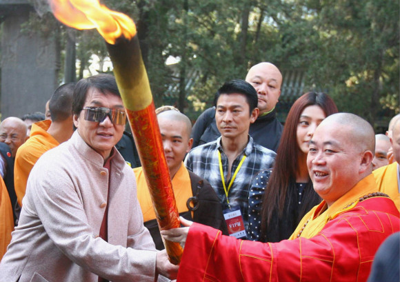 2009年10月22日,河南登封,当日电影《新少林寺》在河南登封少林寺正式举行开机仪式。成龙、刘德华、范冰冰等在方丈释永信陪同下参观少林寺。