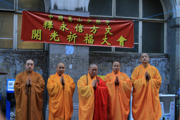 2014年10月8日,中国嵩山少林寺方丈释永信及众多少林寺僧人现身英国伦敦唐人街,进行祈福开光等仪式。
