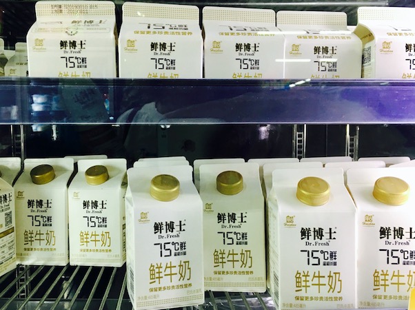 界面新闻走访沈阳家乐福、沃尔玛、奶站等渠道发现,辉山的鲜博士(袋装、盒装、瓶装)在超市有大面积的陈列区域,酸奶产品还在推新,将之前的“十天”升级为“0+”,并在超市以促销、买赠活动吸引了本地消费者购买。一名奶站(专门进行奶制品批发和零售的渠道)工作人员称,辉山的鲜奶价格低(袋装批发2.2元,零售2.3-2.5元),走量也比较大,但是常温奶,辉山就干不过蒙牛、伊利了。
