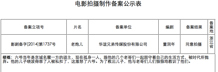 《老炮儿》讲的是个什么故事呢?在广电总局的拍摄制作备案公示表里,曾有一个内容大概。