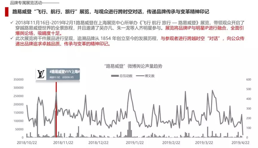位列奢侈品综合影响力排名第一的DIOR就率先在抖音等新兴媒体平台中开设账号,并做出了不少数字化传播尝试;路易威登去年末至今年初便通过“飞行、航行、旅行”展览加流量明星参与的方式,成功引爆了微博话题。