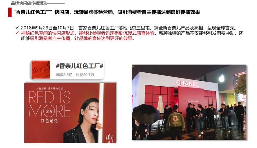 香奈儿去年也通过“红色工厂”的线下快闪店进行城市巡展,让“红色工厂”成为朋友圈中的打卡圣地。