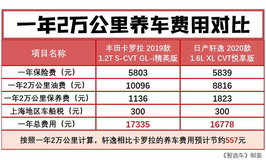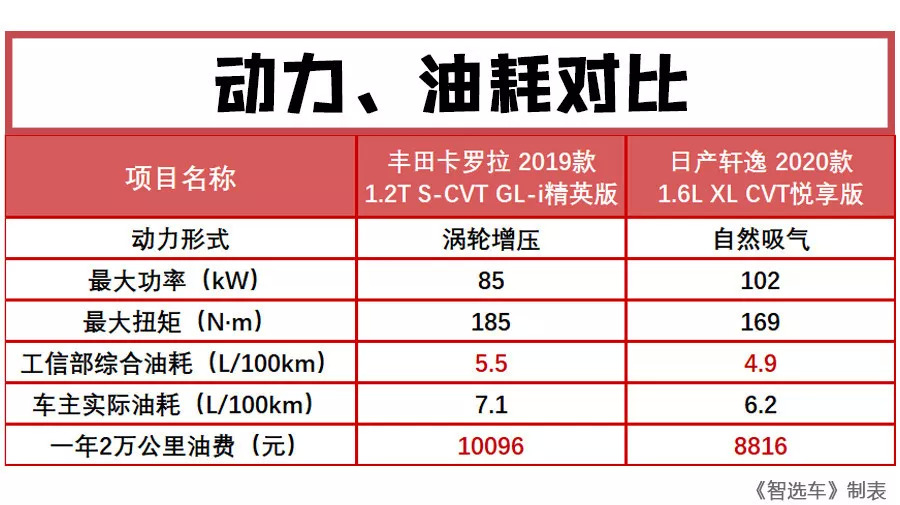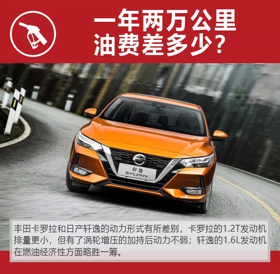由于两款车型刚刚上市,所以真实车主的实际油耗数据还未生成,小智根据现有的老款车型真实油耗数据和新老款车型工信部油耗差异,推测它们的实际油耗分别为7.1L/100km和6.2L/100km。最终按照一年2万公里计算,丰田卡罗拉相比日产轩逸预计多花费1280元的油费。