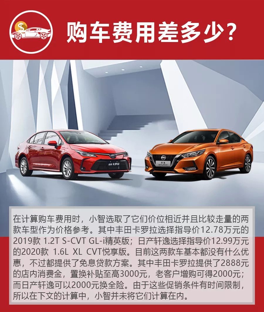 丰田卡罗拉和日产轩逸都是合资紧凑级家轿市场的热门车型,如今随着第12代丰田卡罗拉的正式上市,这两款车也都完成了各自的换代。对于大多数普通消费者而言,丰田卡罗拉和日产轩逸都是性价比之选。那么如果月薪3000元,采用贷款的方式购车,一年行驶2万公里,能够负担起这两款车的贷款和养车费用吗?这两款车的购车、养车成本谁更低?今天小智就来帮你好好算笔账。