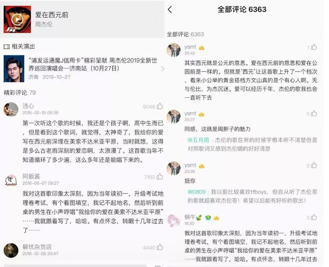 这种推荐,还出现在《爱在西元前》这首歌的评论里。