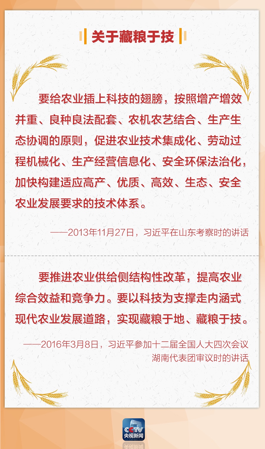 △【独家V观】习近平:中国人要把饭碗端在自己手里,而且要装自己的粮食