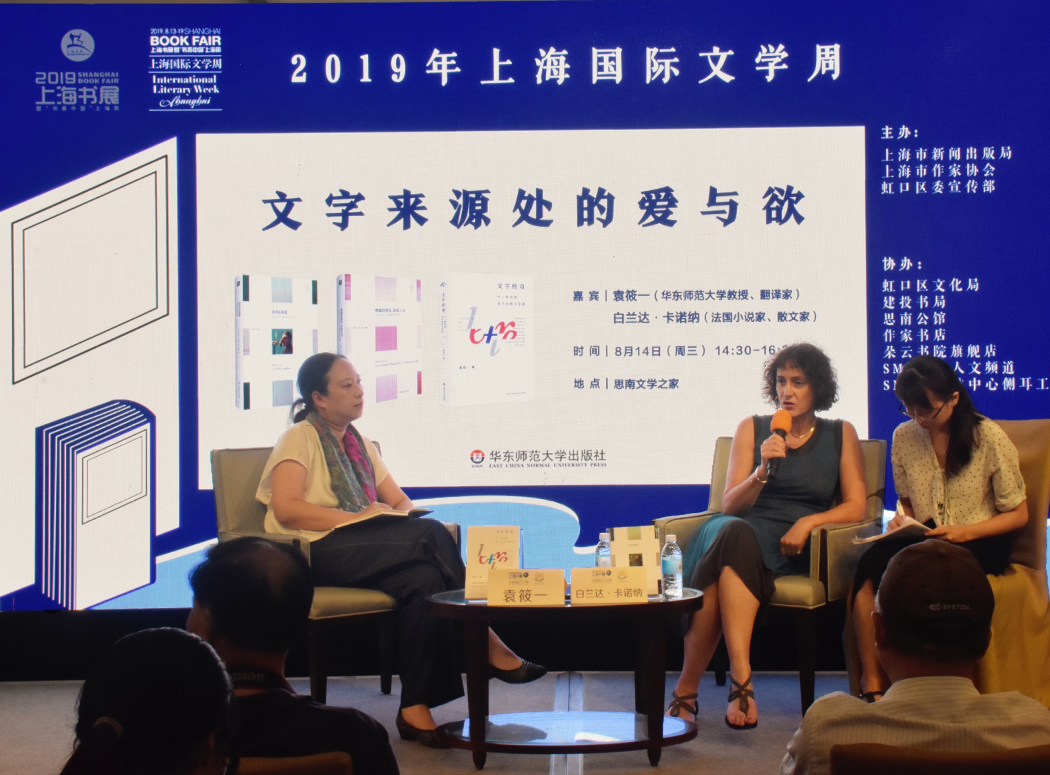 与白兰达对谈的是法国文学研究者、翻译家袁筱一,她也是出版于2015年的白兰达随笔集《僭越的感觉 欲望之书》的中文译者。她评价白兰达是一个“多面写手”,作品涉及诗歌、散文、小说、评论多种体裁。在翻译的过程中,袁筱一与这位法国当代作家产生了一种“息息相通的感觉”,原因之一在于白兰达惯常以非学术的随笔方式创作文学评论,这也是袁筱一个人很喜欢的一种切入文学的方式,从她今年再版的文学评论集《文字传奇》中我们也能发现这一点。另外,袁筱一认为,“虽然(白兰达的)评论写作十分细腻而感性,但其与理性并不矛盾,”人们倾向于将女性视为对于情感、爱欲更敏感的动物,然而她指出,一方面爱与欲望本身是一个十分严肃的写作主题,而且写作——不同于日常生活的其他部分——本身也是一种理性的行为,我们不应该在文学的语境下将感性与理性对立起来。
