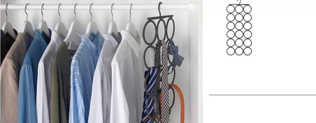 1、多用衣架虽然这个衣架长得有点奇怪,但不妨碍它成为收纳配饰的神器,女士的披肩、围巾,男士的领带腰带统统都可以完美收纳,而且完全不占空间,拿取也非常便捷。