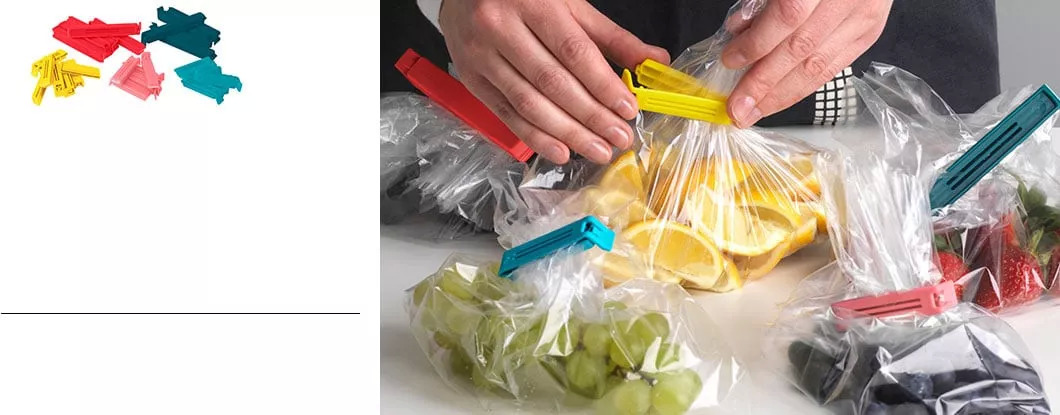 4、密封夹隔夜的零食、拆开的麦片、开封的茶叶、用不完的化妆品小样,都可以用这个封口夹解决。一套封口夹里分别有6cm和11cm,可满足不同尺寸包装的食物收纳和保鲜需求,也可用于冰箱冷冻室和洗碗机。