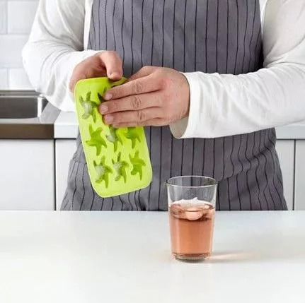 3、冰格小花花、小鱼儿、小海星…..宜家的冰格形状可爱和颜色清爽,然鹅,它是橡胶做的,放进冷冻室后,橡胶和冰块和容器紧紧“抱”在一起,难舍难分……