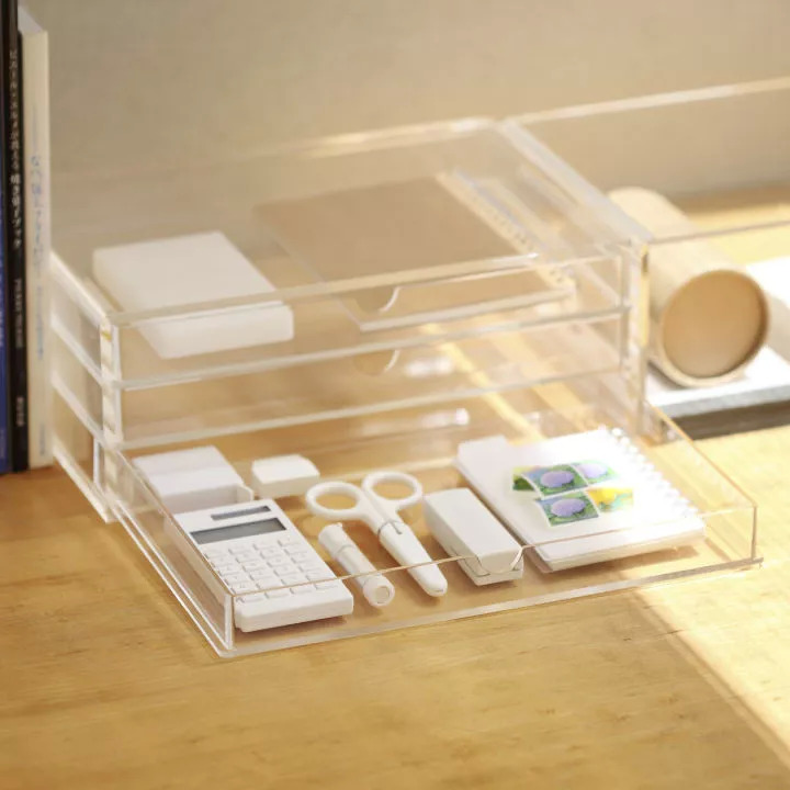 由于通体透明所以拿取也很便利,还可以配合搁板可以放置水乳,收纳起来更加清爽。特别适合有强迫症的姑娘们。