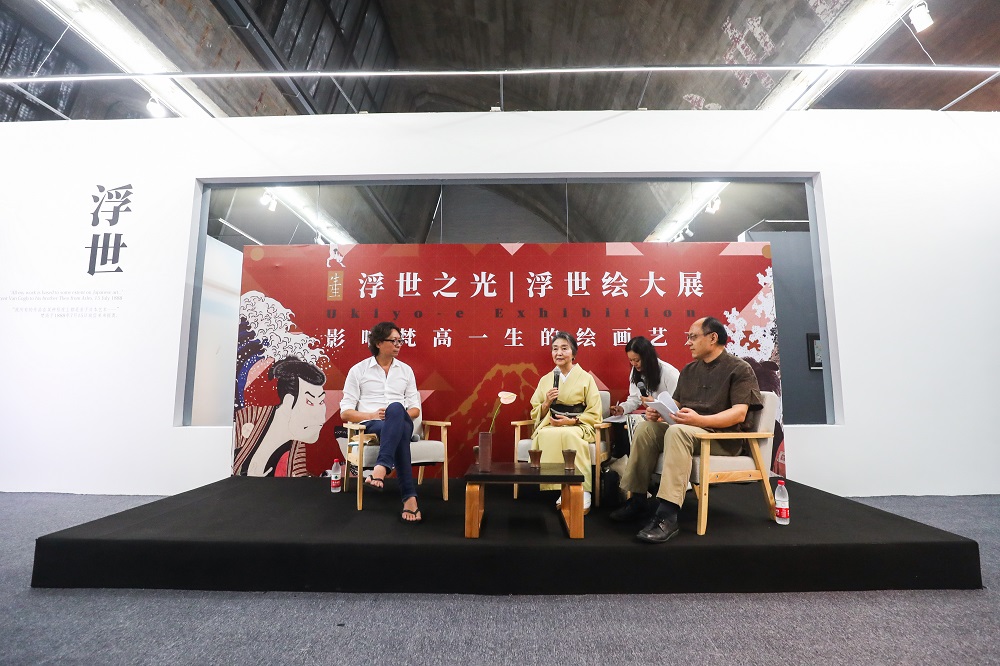 在日本传统工艺界的定义中,只有描绘平民百姓生活的木刻版画才是浮世绘。作为浮世绘版画的工艺世家、高桥工房的第六代传人,高桥由贵子在展览发布会上介绍了浮世绘幕后的创作机制和制作工艺,同时,她还与中国社会科学院文学研究所学者董炳月以及作家许知远就浮世绘的渊源、浮世绘与中国传统艺术和近现代生活的关系展开了对谈,试图引领观众发现浮世绘作品中的意义表达。