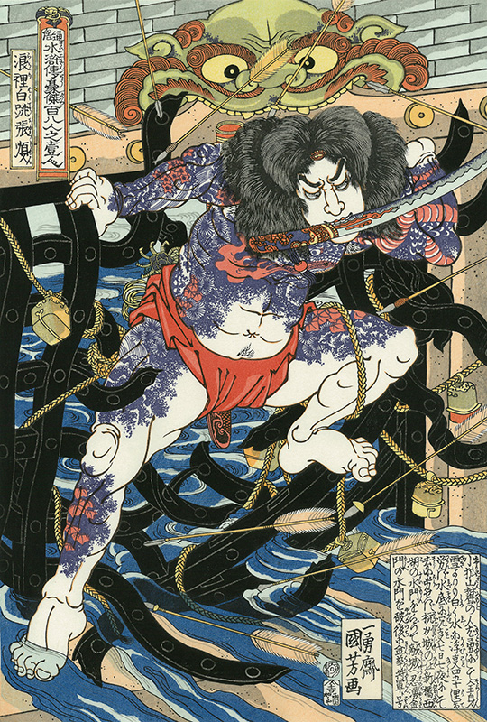 相比之下,江户时期的浮世绘画家对中国传统文化的痴迷是显而易见的。葛饰北斋就曾为《西游记》量身定制精美插图,《三国演义》《水浒传》等小说也是浮世绘大师们钟爱的题材。另外,歌川广重还用浮世绘演绎过唐诗。在他的两幅描绘月亮的浮世绘作品《弓张月》和《叶隙之月》的画面上,人们可以清楚地看到创作的灵感来源:《弓张月》题的是韩翃七绝《宿石邑山中》的后两句——“晓月暂飞千树里,秋河隔在数峰西”;《叶隙之月》题的是白居易七绝《秋雨中赠元九》的前两句——“不堪红叶青苔地,又是凉风暮满天”。在董炳月看来,这两幅画实为“唐诗画意”,甚至超过了中国画家对唐诗的演绎。