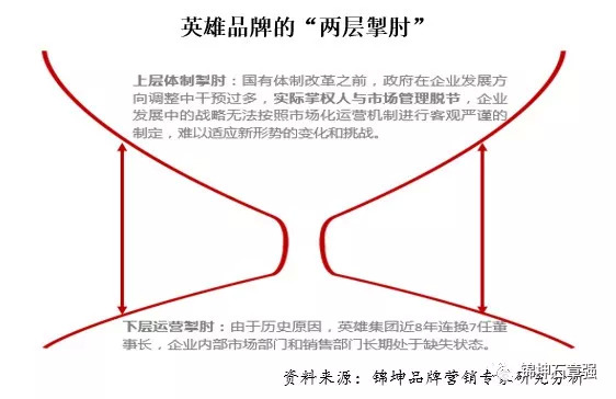 坊间有一种观点被广泛传播,说英雄的问题主要是计划经济的遗毒与体制的僵化,而英雄集团在实际品牌发展过程中也确确实实存在“两层掣肘”: