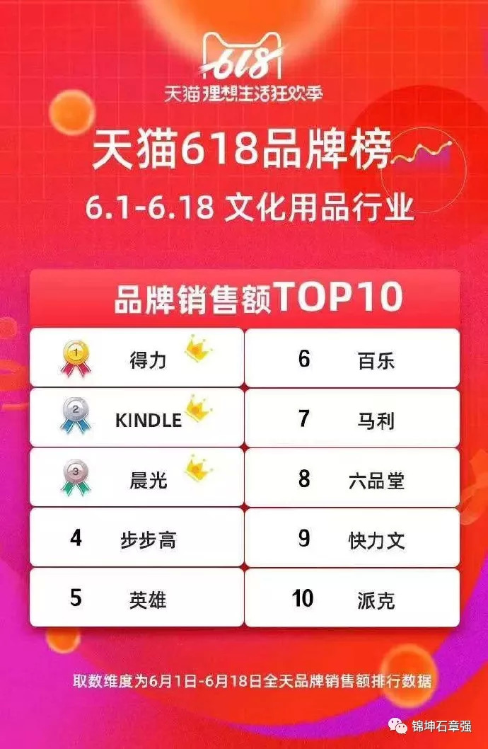 4) 2016年1月~5月,英雄钢笔销售额继续增长12.31%和26.17%。2017年开始电商年销售也呈现50%-100%的高增长率,2019年618,英雄已位列天猫所有文化用品行业第五位和钢笔第一位,仅次于得力、晨光、步步高等,已远远超越了百乐、马利、派克等品牌。