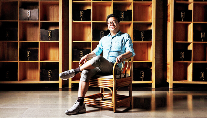 网易总部由镜面映射的两幢青色主楼外加一座配楼构成,没有传统意义上的框形大门。丁磊参与了大楼的设计,前前后后花了半年时间。采访结束后,穿着浅蓝色优衣库短袖衬衫、五分裤、白色运动鞋的他带我们绕园区走了一圈。两幢主楼间曲曲折折的水景、大楼错落有致的窗户、楼前移栽过来的树,是丁磊参差多态的审美趣味的现实凝固。