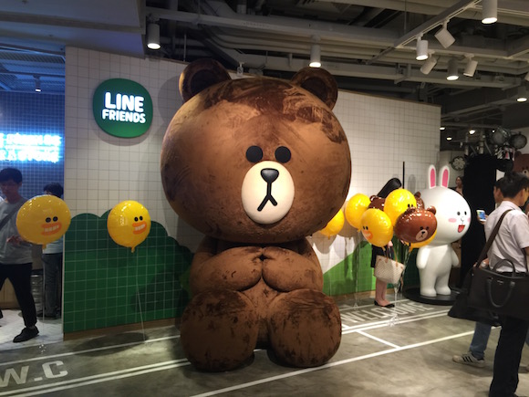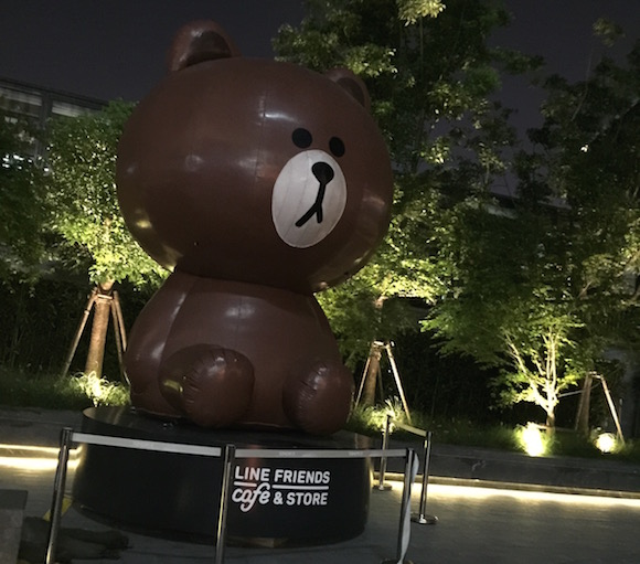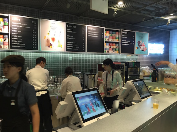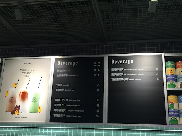 再向前走,越过那只超大号的布朗熊后,就是Line Café的点餐区了。整个点餐收银系统采用双屏幕,顾客可以很清晰地知道自己的消费情况,这与韩国门店是一样的。