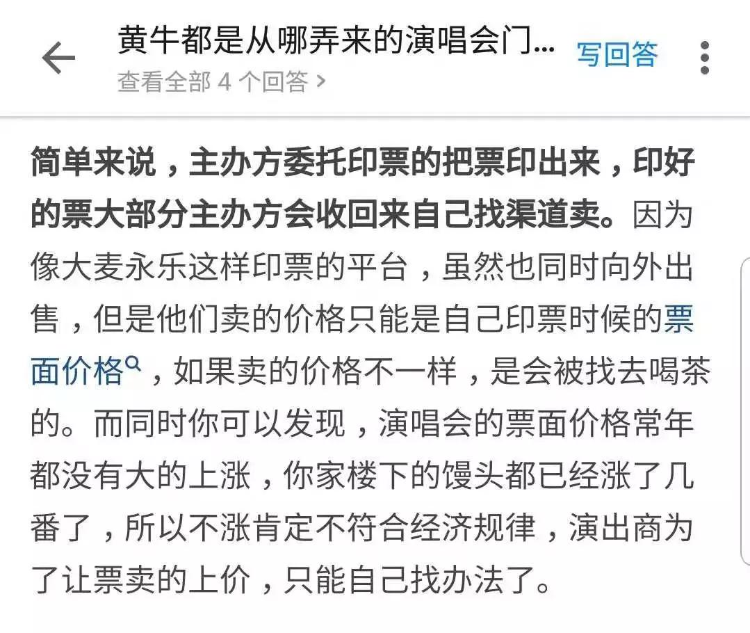 他的总结是:“黄牛就是通过调理整个票务市场赚钱的,为了表面的公平,不能火的演出卖高价不火的卖低价,必须有二级市场站出来背锅。”