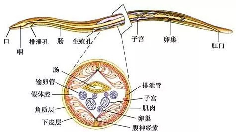 秀丽隐杆线虫则处于孤雌繁殖和有性繁殖的过渡区间,在自然界中绝大多数秀丽隐杆线虫都是雌雄同体,它们拥有一对性染色体,可以用自己精囊产生的精子为自己的卵子受精。