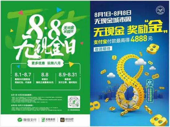 2015年,微信首次启动8月8日“无现金日”,以鼓励金等方式补贴微信用户,培育用户移动支付习惯。彼时,根据易观数据,支付宝占据超过70%的市场份额,而财付通仅占比16%,牢牢占据市场的支付宝当时并没有选择跟进。