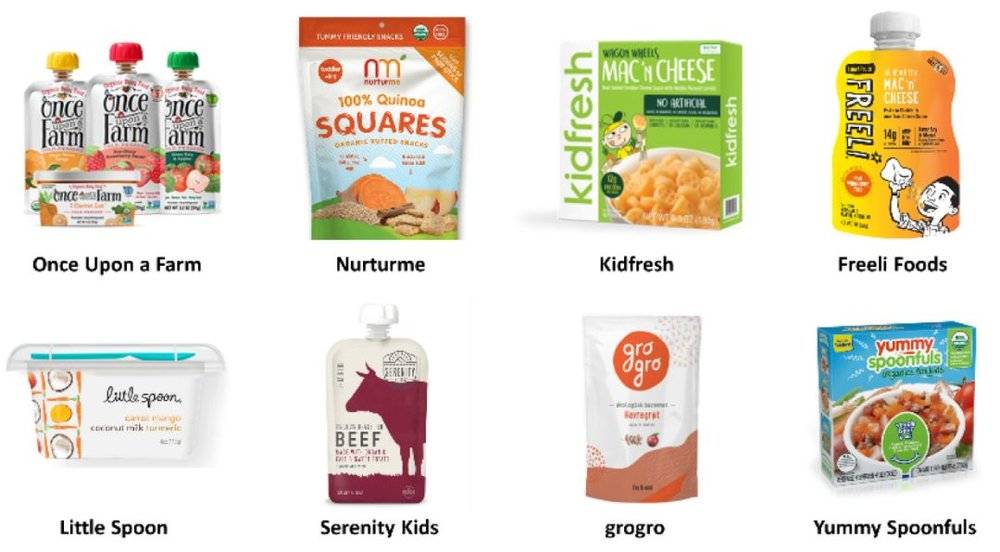 值得一提的是,美国儿童速食餐品牌在过去一年内颇受资本青睐。例如提供果蔬混合制品订阅制服务的Once Upon a Farm已累计融资2,300万美元,主攻超市线下渠道额的Kidfresh和Freeli Foods,以及定制化辅食品牌Little Spoon。在中国,部分大型食品公司有覆盖儿童食品的产品线,独立的儿童速食餐品牌尚未出现。