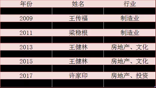 (近十年中国首富及所属行业,数据来源:胡润百富榜)