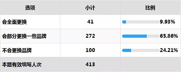 在关于2019年轮胎店会不会更换代理轮胎品牌时,65.86%的轮胎店选择将会更换部分轮胎品牌。这里也说明了轮胎店对部分轮胎品牌的销售政策和服务以及产品并不是很认同,轮胎企业需要制定更加合理的销售政策来挽回轮胎店的心。