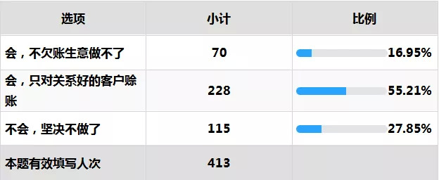 但同时我们也要看到,有9.2%存在10万以上的欠款未追回,这真的要警醒了,因为轮胎店的倒闭和崩溃,都是从巨额赊账开始的。