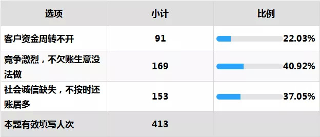 过去我们认为生意上的欠账无非是资金周转不开,而数据告诉我们:竞争激烈是主要原因,占了40.92%的比例。也就是说,大多数店主认为:正常情况下的大胎生意,本是不需要赊账欠账的。因为同行竞争激烈,拖垮了整个行业,使得利润薄,欠账多。