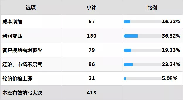 营业收入少也限制了轮胎店扩张和改善的可能,也使更多轮胎人离开轮胎行业。因此,营业收入低的轮胎店应该考虑增加盈利项目和盈利的轮胎品牌,提高服务和专业度来提高自己的竞争力,赢取生存空间。