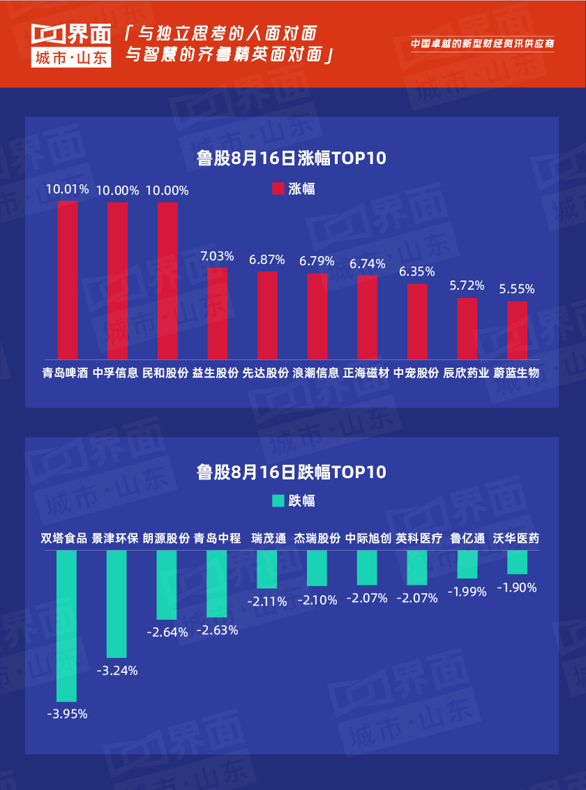 8月16日,山东省内沪深股票有115只个股上涨,67只下跌,24只与上一个交易日收盘价持平;