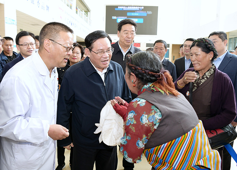得知医院开通了远程影像诊疗中心,可连线上海三甲医院专家会诊,李强表示肯定,勉励援藏医务工作者为边疆各族群众提供更加优质的医疗服务。他说,要用心用情用力做好对口援藏工作,聚焦教育、医疗等民生重点难点问题,深化“组团式”援藏,深化智力支援,切实提升当地公共服务水平,不断改善农牧民生产生活环境。