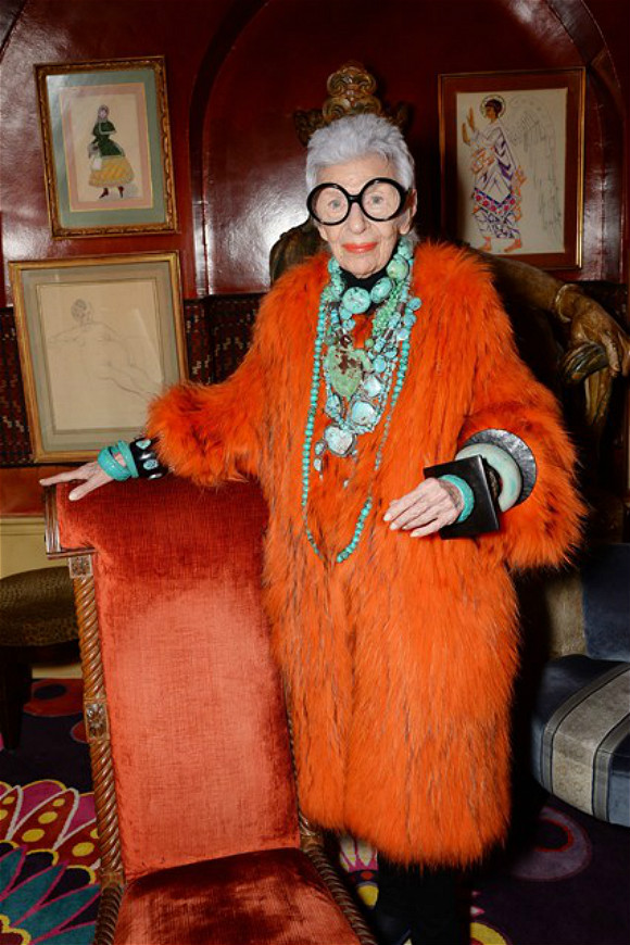 经典会永存,格调也不会褪色。Apfel再次证明了这一点,她不算是靠着收集经典而出名的,她只是喜爱收藏,尤其是那些年代久远的小物。这位从12岁起就爱上买衣服、喜爱逛二手市场的老人在2005年轰动了纽约时尚界。那时,纽约大都会博物馆只是想借她的首饰来装饰一个主题为年代久远的展,后来考虑到搭配,又想顺便借几身衣服。