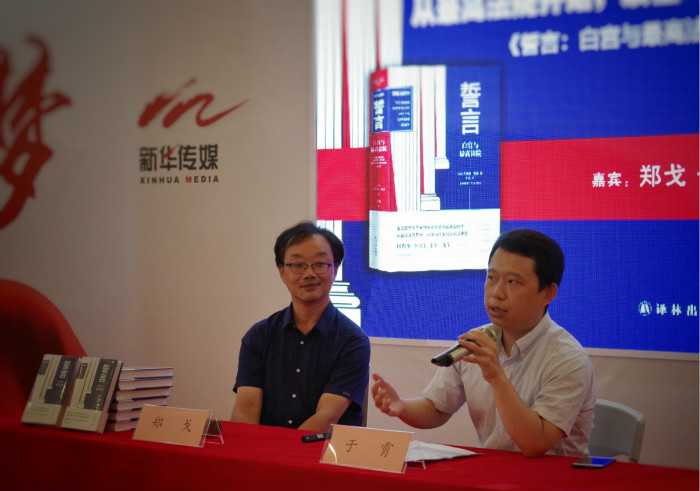 8月15日,译林出版社邀请《誓言》译者、上海师范大学副教授于霄及上海交通大学凯原法学院教授郑戈来到上海书展现场,以“从最高法院开始,读懂当代美国政治”为题展开讨论。郑戈指出,法院一直以来在美国政治传统中占据非常高的地位,这也是美国社会的一大特色,鉴于不同国家对法律职业群体的认知程度不一,这一制度安排很难复制到其他国家,但也正因为如此,我们要理解美国当代政治,就必须了解美国联邦最高法院。