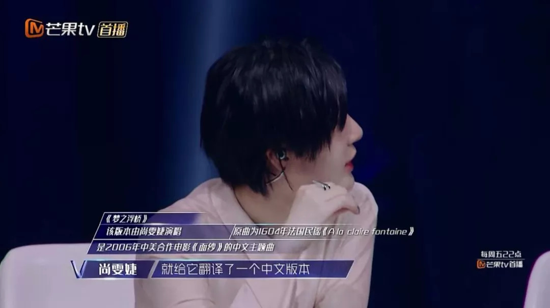 尚雯婕在节目里说到自己的一首歌《梦之浮桥》,称该歌曲为法语民谣,自己给它翻了一个中文版本,后期为了增强理解,写上的是“翻译”,原意应该为“翻唱”。