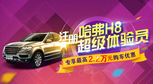 最近,长城汽车针对哈弗H8搞了一次促销活动,那就是即日起至2015年10月31日,登陆哈弗官网注册报名,申请参加哈弗H8超级体验员,购买哈弗H8两驱豪华车型(售价:22.18万)即可享受2.2万元现金大礼,参与体验活动的用户将以19.98万元的震撼价购买到哈弗高端SUV,并将体验期内的心得体会与网友分享。