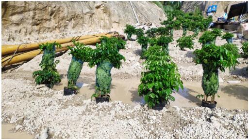 其中,漳浦蔡坑矿区、长桥矿区生态破坏严重,在督察组进驻后,当地政府紧急要求矿主复绿,企业将大量盆栽苗木简单覆土,甚至直接摆放在场地,搞“盆栽式复绿”。砂场在既没有拆除设备,也未对场地进行覆土的情况下,直接在砂石、混凝土地面上铺设草皮,应付了事。现场检查时,多数草皮已经枯死。