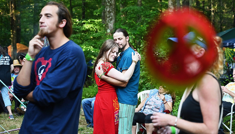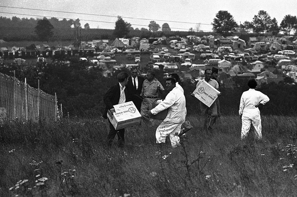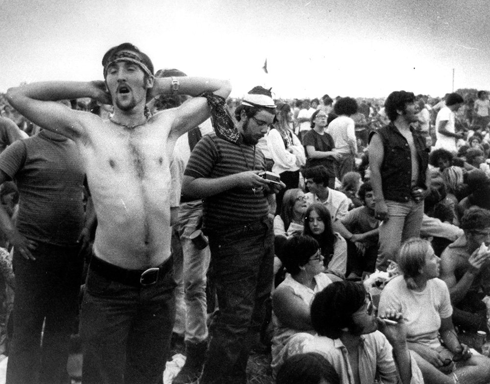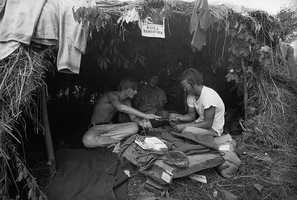 人们穿过满目疮痍的破围栏,也穿过组织者失败的印记。音乐节开始不久,纽约州州长纳尔逊·洛克菲勒便宣布,这个地区已经进入混乱状态。无法满足基本需求的后勤,被堵的水泄不通的小路,狂风和暴雨导致的泥泞,迟到的歌手和安排混乱的日程……唯一准备齐全的便是各色毒品和酒。然而令人意外的是,在这座规模相当于波士顿市总人口的“嬉皮士城市”里,一种比毒品劲头更大的东西在人群中引起亢奋:一群人自发的相互分享、给予和关照的精神迸发了出来。因此在整个音乐节举办过程里,没有任何暴力事件发生,摇滚乐让年轻人享受了三天极度自然、自由的生活,人们相亲相爱,彼此共情也彼此依赖——不用暴力维持的爱与和平,在这里被证明是行得通的。