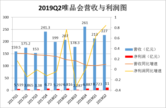 8月15日凌晨,唯品会(VIPS.NYSE)发布截至6月30日的2019财年第二季度未经审计财报。报告显示,唯品会Q2净营收为227亿元(约合33亿美元),同比增长9.7%;归属于公司股东的净利润为8.135亿元(约合1.185亿美元),同比增长19.3%。