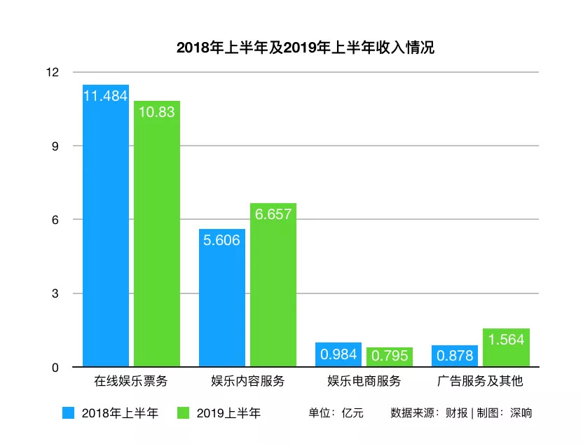 其中,娱乐内容服务上半年收入6.657亿元人民币,同比增长18.7%;广告业务收入1.564亿元人民币,同比大幅增加78.1%。这两部分收入的增长显示出猫眼的营收结构正在持续优化中。
