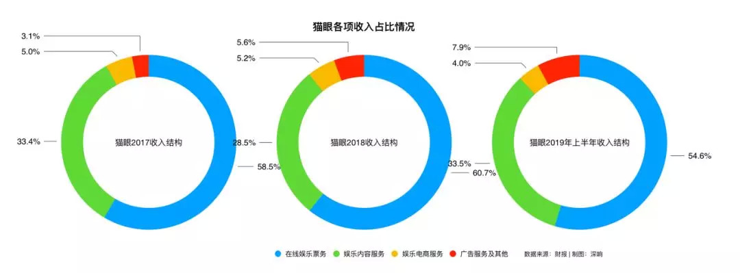 另外,不得不说今年上半年处在调整期的电影市场环境,对此次猫眼的在线娱乐票务业务和娱乐电商业务所得收益产生了一定影响。截止今年6月底国内电影总票房为311.7亿元,同比下降2.7%,观影人数同比减少10.3%至8.08亿,在这样的大环境下猫眼的在线票务业务收益虽有所减少,但其电影线上票务保持住了60%的市场份额且仍有增长,实属不易。