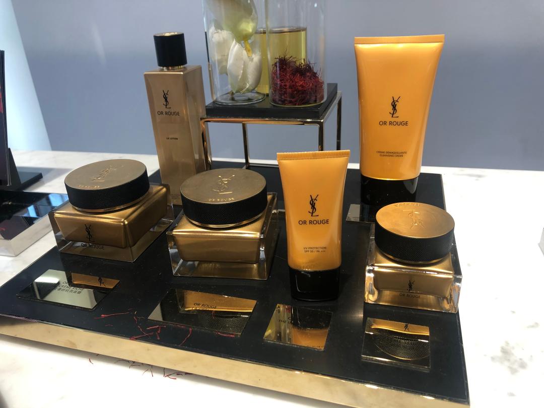 口红试色之后,我们就来到中部左侧护肤区设有的卡座区,LED播放着品牌的宣传介绍,眼前的体验区,摆放着顶级护肤系列Or Rouge藏金奢妍和Top Secrets超模绝密等系列。