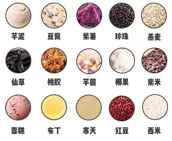 这个时期,各种跨界而来的群演在奶茶里成了主角,并在市场筛选中,留下了一批集“美貌与才华”于一身的经典款,如珍珠、椰果、红豆、布丁、寒天等。