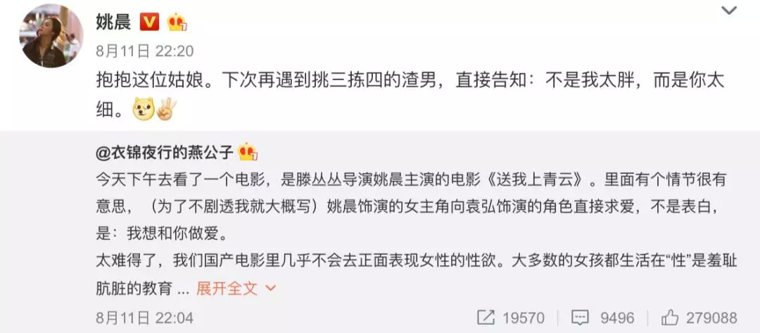 8月11日,姚晨回应知名博主的“硬核开车言论”得到了女性群体热烈的响应。