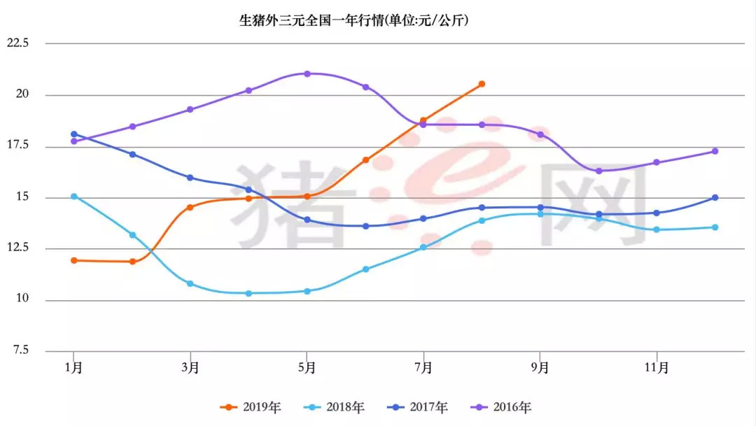8月19日,全国生猪均价24.17元/公斤,已突破历史最高21元/公斤。