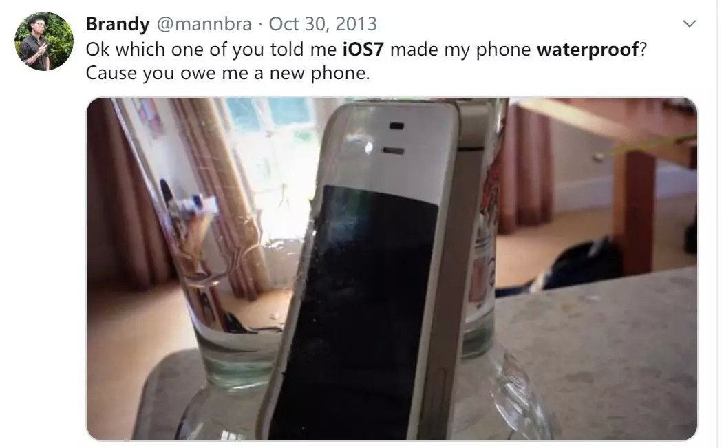 是哪个告诉我 iOS7 能防水的?你欠我只新手机