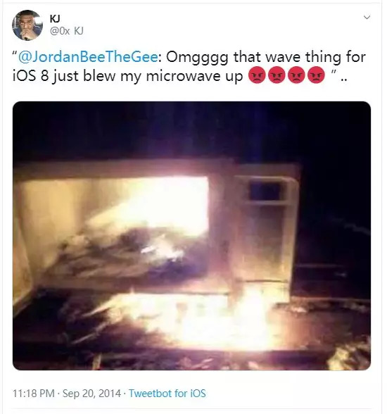 “天啦撸, iOS8 的微波科技刚爆了我的微波炉”