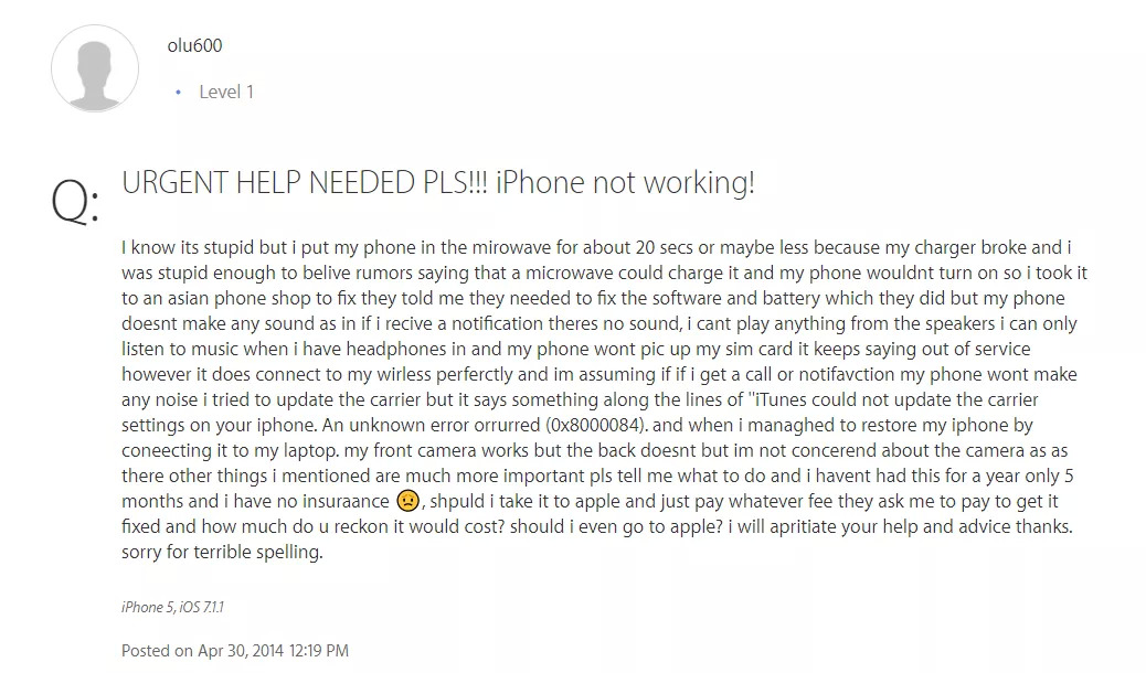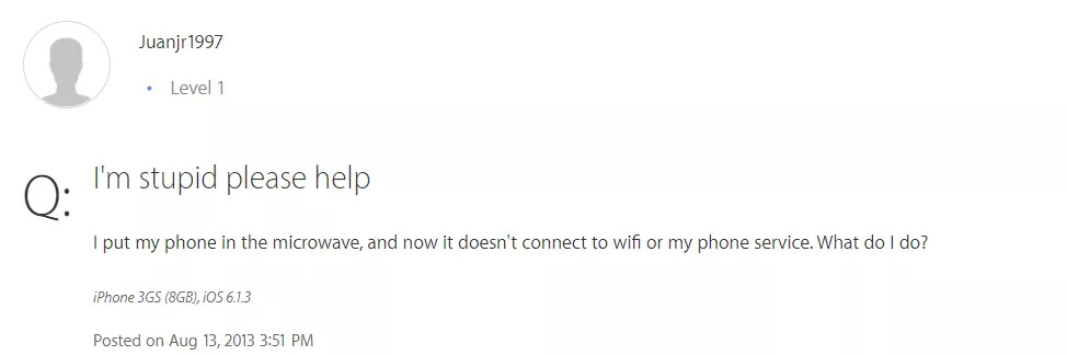“ 我知道很蠢但是我真的把 iPhone 微波了 20 秒 ”
